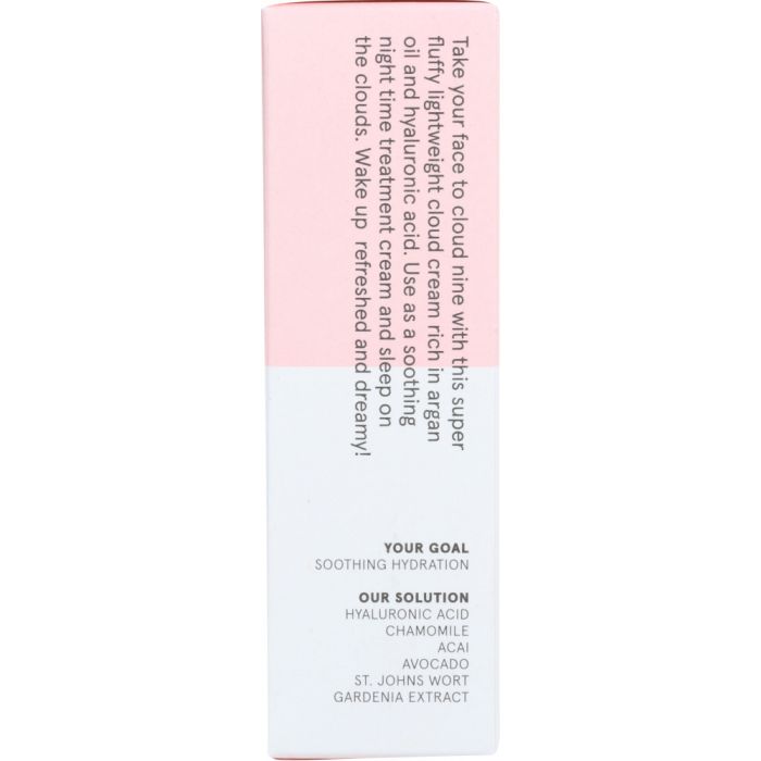 Takes your face to cloud nine with its super fluffy lightweight cloud cream rich in argan oil and hyaluronic acid. Use as a soothing night time treatment cream and sleep on the clouds. Wake up refreshed and dreamy!