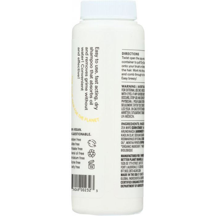 With rosemary & peppermint. Easy to use, fast acting, dry shampoo that absorbs oil and removes grime without water! Convenient and effective!