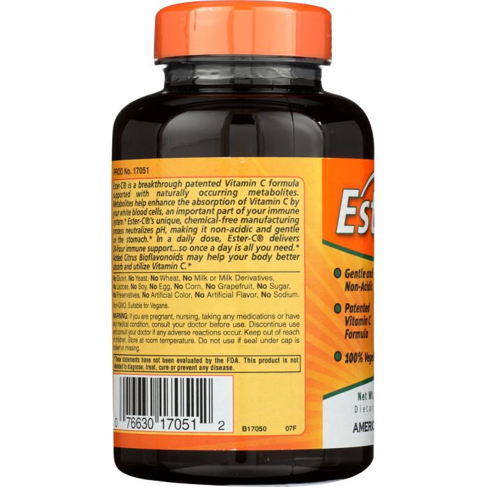 Ester-C® is a breakthrough patented Vitamin C formula supported with naturally occurring metabolites. Metabolites help enhance the absorption of Vitamin C by your white blood cells, an important part of your immune system. Ester-C®’s unique, chemical-free manufacturing process neutralizes pH, making it non-acidic and gentle on the stomach. In a daily dose, Ester-C® delivers 24-hour immune support...so once a day is all you need. Added Citrus Bioflavanoids may help your body better absorb and utilize Vitamin C.