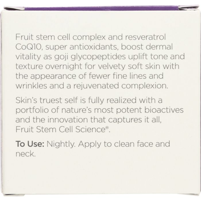 Fruit Stem Cell Complex, Resveratrol, and CoQ10 create a potent portfolio of antioxidants to stimulate circulation, slow cellular damage, and speed healthy cell renewal for improved dermal texture, diminishing fine lines and wrinkles overnight for smooth, ageless beauty. Non GMO Cruelty-Free Gluten-Free Vegan