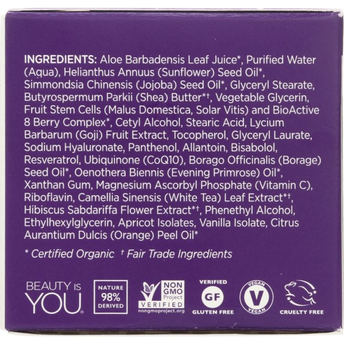 For Dry/Very Dry SkinFruit stem cell complex and resveratrol CoQ10, super antioxidants, help support dermal vitality as goji glycopeptides uplift tone and texture for velvety soft skin with the appearance of fewer fine lines and wrinkles and a rejuvenated complexion.