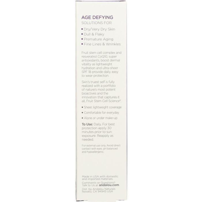 Perfect for dry and very dry skin, this ultra-sheer SPF facial lotion provides essential moisture with broad spectrum SPF protection. Fruit Stem Cells and BioActive 8 Berry Complex help defend against UV and environmental damage, while stimulating healthy cell renewal for optimum age defying benefits. Sheer lightweight formula Comfortable for everyday Wear alone or under make-up Broad Spectrum Protection Non GMO Cruelty-Free Gluten-Free Vegan