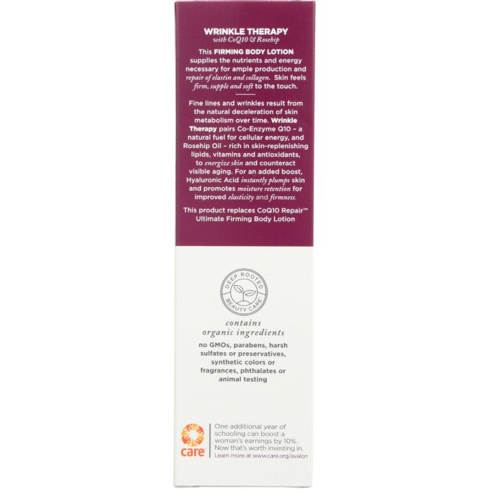 This FIRMING BODY LOTION supplies the nutrients and energy necessary for ample production and repair of elastin and collagen. Skin feels firm, supple and soft to the touch. This product replaces CoQ10 Repair™ Ultimate Firming Body Lotion. The new and improve formula now contains antioxidant-intensive rosehip oil for added wrinkle-fighting benefits. NSF/ANSI 305 certified No GMOs Vegan Biodegradable No parabens No phthalates No synthetic fragrances or colors