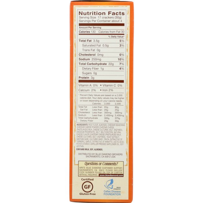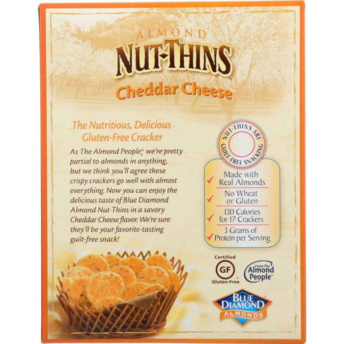 If you love cheese crackers, but don't want the wheat gluten or all that salt and fat, we have good news for you. Our Cheddar Cheese Nut Thins delivers that great cheese taste in a gluten-free, low- sodium cracker with no cholesterol or saturated fat.