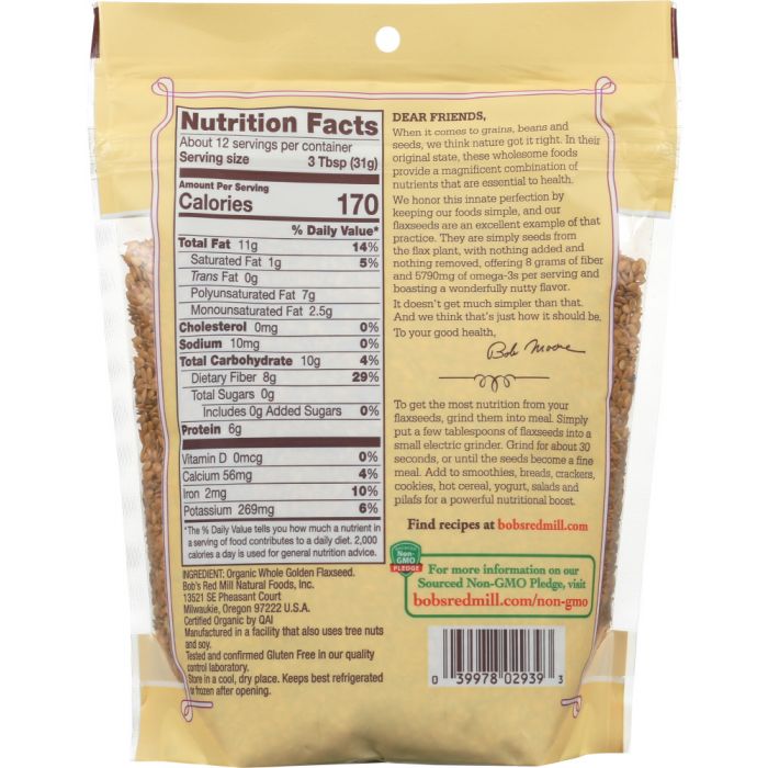Organic golden flaxseed, also known as linseed, comes from the flax plant, which is cultivated for its seeds as well as its fiber. The seeds, which are a little larger than sesame seeds, are an excellent source of omega-3 fatty acids and are rich in dietary fiber and lignan. Used since ancient times, flax is renowned for myriad health benefits.