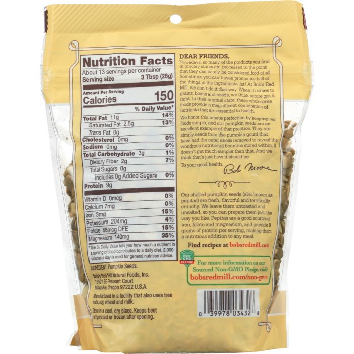 BRM™ brings nutrition to your table with more than just whole grains! Pumpkin Seeds, also known as pepitas, are fresh, flavorful and terrifically crunchy. We leave them untoasted and unsalted, so you can prepare them just the way you like.