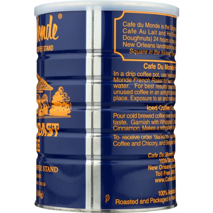 The Original Cafe Du Monde Coffee Stand was established in 1862 in the New Orleans French Market. The Cafe is open 24 hours a day, seven days a week, and only closes on Christmas Day. While originally known for its French-inspired coffee and chicory flavors, the cafe now offers a pure French Roast Coffee without the chicory, with all the same New Orleans' taste. It's a blend of 100% arabica beans and has a smooth yet rich flavor.