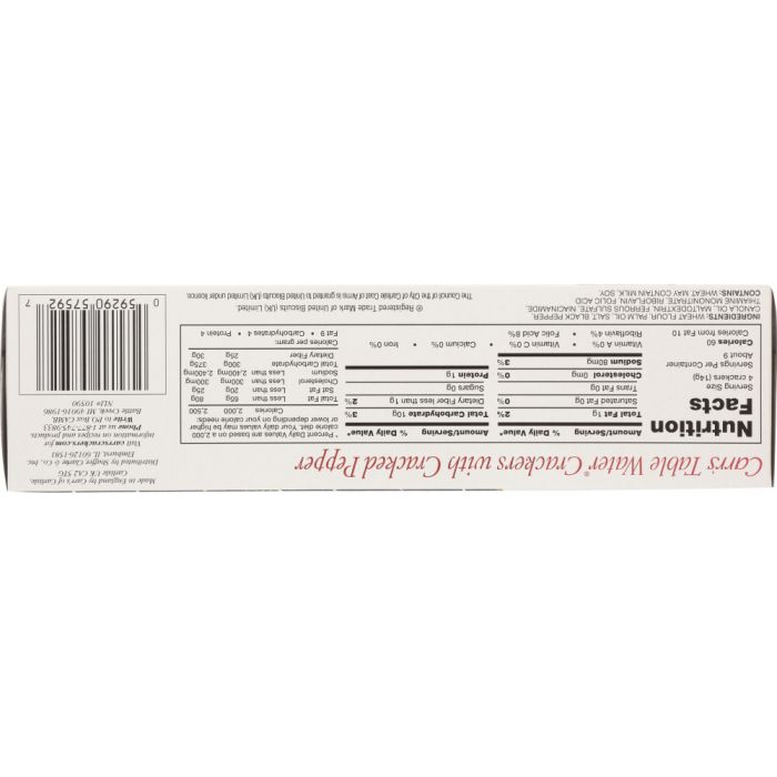 CARRS: Table Water Crackers Cracked Pepper, 4.25 oz
