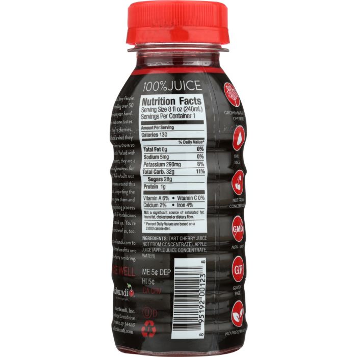 TART CHERRY JUICE (8 OZ) We’re the Cherry People. Every 8 oz. bottle of our original cheribundi cherry juice has over 50 tart cherries in it. Of course, each one tastes incredible — they’re cherries, after all. But it’s what they do that makes us shove so many in a bottle. Packed with phytonutrients, it’s commonly called “the tart cherry“ and is a true source of greatness for the body.* We’ve built our entire company around this amazing fruit, supporting the farmers who grow them and perfecting a juicing process that retains all of its delicious benefits. So drink up. You’re about to be one of us, too.