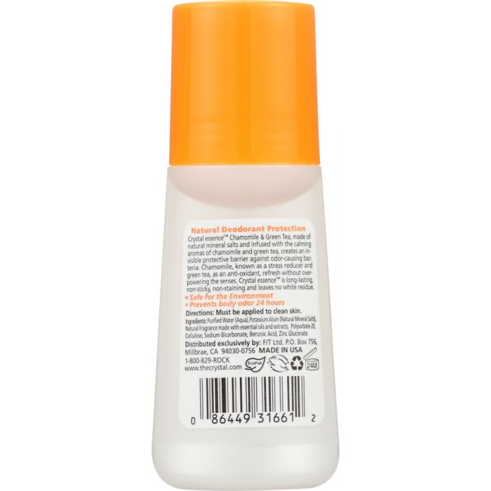 Treat yourself to some relaxing aromatherapy at home or on the go, plus fight skin oxidation around the clock. This Crystal-infused combination of Chamomile & Green Tea rolls on lightly, unlike most roll-ons sold today. Its smooth rolling ball feels great going on, while the power of natural mineral salts naturally eliminate odors all day long.