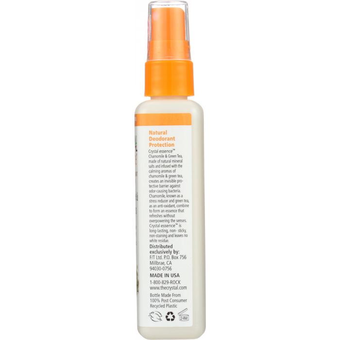 Treat yourself to relaxing aromatherapy at home or on the go, and fight skin oxidation around the clock. This Crystal-infused combination of mineral salts, Chamomile, and Green Tea in this Body Spray are safe enough to be used anywhere on the body to control odors – including feet, chest, and inner thighs. Hygienic bottle design allows use by more than one person.