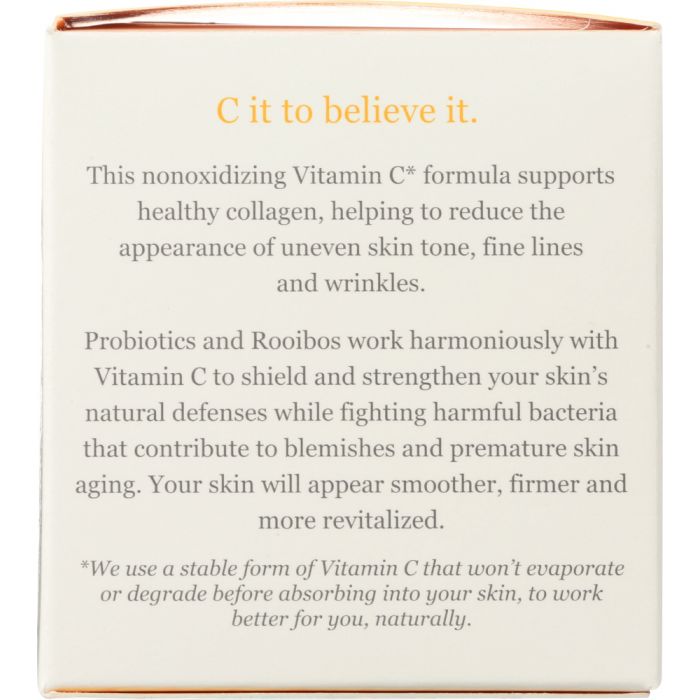This luxurious, antioxidant-rich moisturizer delivers restoring overnight protection and supports natural rejuvenation of environmentally stressed skin. This nonoxidizing Vitamin C formula delivers restoring overnight protection, reducing the appearance of uneven skin tone, fine lines and wrinkles. Probiotics and Rooibos work harmoniously with Vitamin C to shield and build up your skin’s natural defenses while fighting harmful bacteria that cause blemishes and premature skin aging. This intense night cream promotes cell turnover while neutralizing daily toxins. Your skin will appear smoother, firmer, and more revitalized.