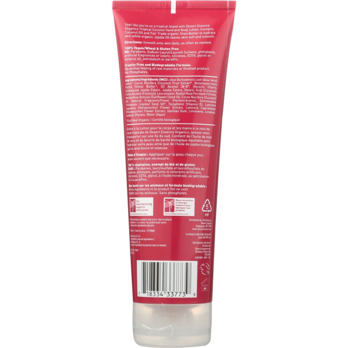 DESERT ESSENCE: Organics Hand and Body Lotion Tropical Coconut, 8 oz