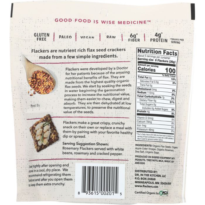 DOCTOR IN THE KITCHEN: Flackers Flax Seed Crackers Rosemary, 5 oz