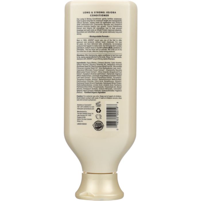 Our Long and Strong Conditioner gently fortifies weakened, hard-to-grow-long hair for maximum length and manageability without dryness. Jojoba Seed Oil replenishes lost moisture while antioxidant-rich Chamomilla Recutita and Grapefruit Extracts promote healthy hair growth. Yucca Filamentosa Extract and Vitamin B5 strengthen hair to help prevent breakage and split ends as Wheat Protein improves elasticity. Nourished and refortified, your hair grows lustrously long and strong.