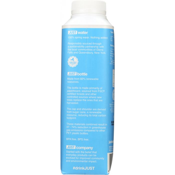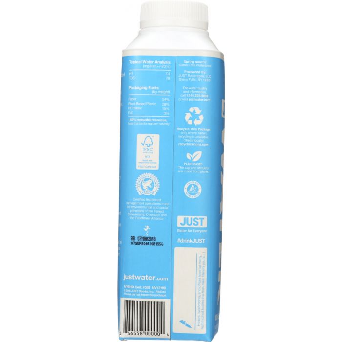 JUST water is excess spring water obtained through a water sustainability partnership with the community who owns the source. This ensures ethical use of the water in the community. Using a natural water source (spring or artesian) was our only consideration from the beginning. Finding our ideal source was predicated on abundance, taste, and responsible sourcing (of conservation and waste reduction). These criteria eliminated the option of starting with a municipal source.