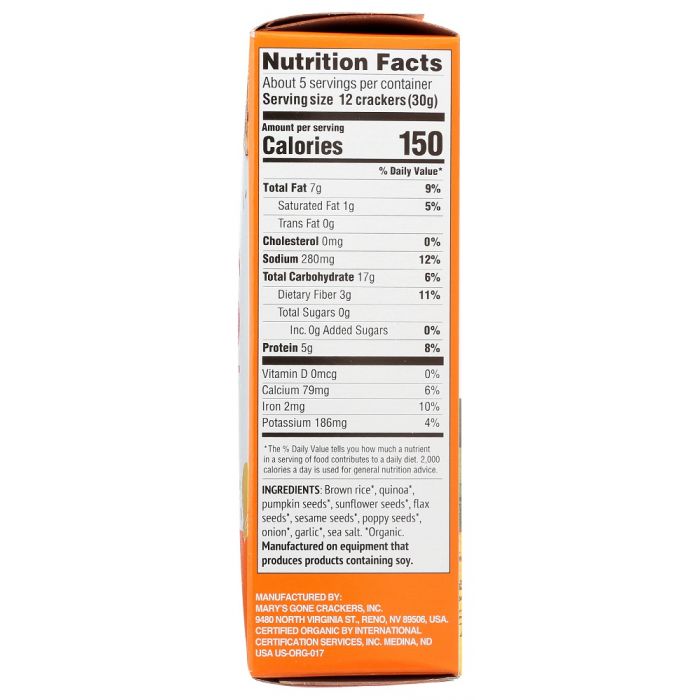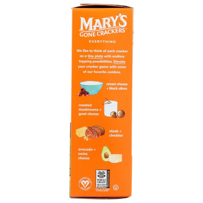 Garlic. Onion. Poppyseed. Quinoa. Pumpkin seed. Sunflower seed. Flaxseed. Sesame seed. This flavorful and hearty cracker is Super Seed, and then some! Mary’s Gone Crackers® Super Seed Everything Crackers are loaded…yet light, built to handle just about any topping you can imagine. When nothing else will do, try Everything!