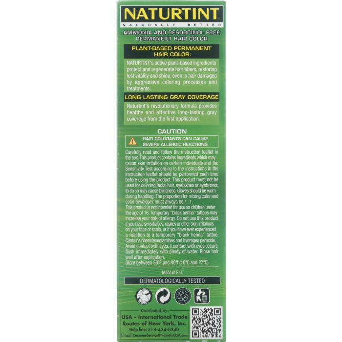 Plant-based Permanent Hair Color: Naturtint's active plant-based ingredients protect and regenerate hair fibers, restoring lost vitality and shine, even in hair damaged by aggressive coloring processes and treatments. Long Lasting Gray Coverage Naturtint's revolutionary formula provides healthy and effective long-lasting gray coverage from the first application. Naturtint Permanent Hair Colorants; FREE FROM Ammonia, Resorcinol, Parabens, SLS, Mineral Oils. ENRICHED WITH ingredients of natural origin to provide optimum colour and care for healthy hair. 32 PERMANENT COLOURS available, all of which can be mixed to create an endless spectrum of colours. All shades offer 100% GREY COVERAGE and can lighten hair by up to two shades.