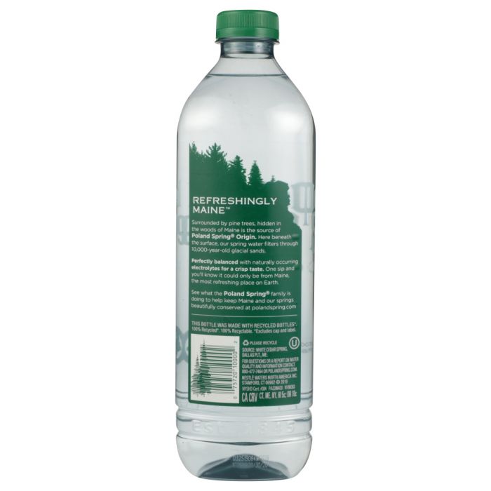 REFRESHINGLY MAINESurrounded by pine tress, hidden in the woods of Maine is the source of Poland Spring Origin. Here beneath the surface, our spring water filters through 10,000-year-old glacial sands.Perfectly balanced with naturally occurring electrolytes for a crisp taste. One sip and you'll know it could only be from Maine, the most refreshing place on Earth.See what the Poland Spring family is doing to help keep Maine and our springs beautifully conserved at polandspring.com