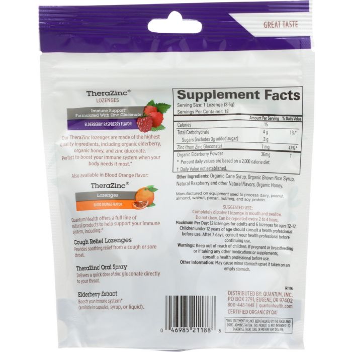 QUANTUM: Lozenges TheraZinc Elderberry Organic, 18 ea