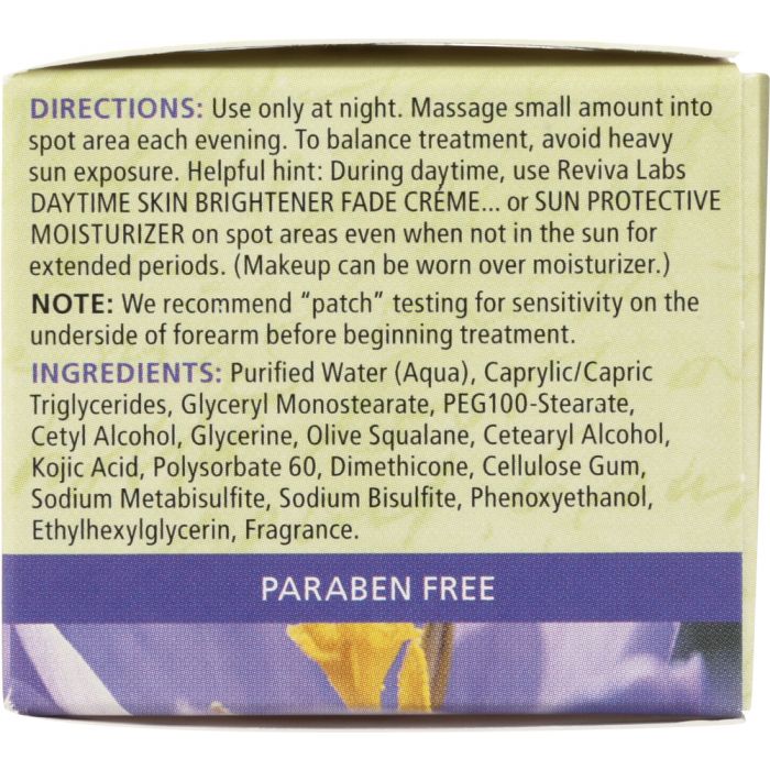 Kojic Acid brightens skin naturally. The unique blending of this cream, with a natural oil base to aid absorption, allows super brightening agent Kojic acid to quickly diminish the appearance of dark spots or any skin discoloration.