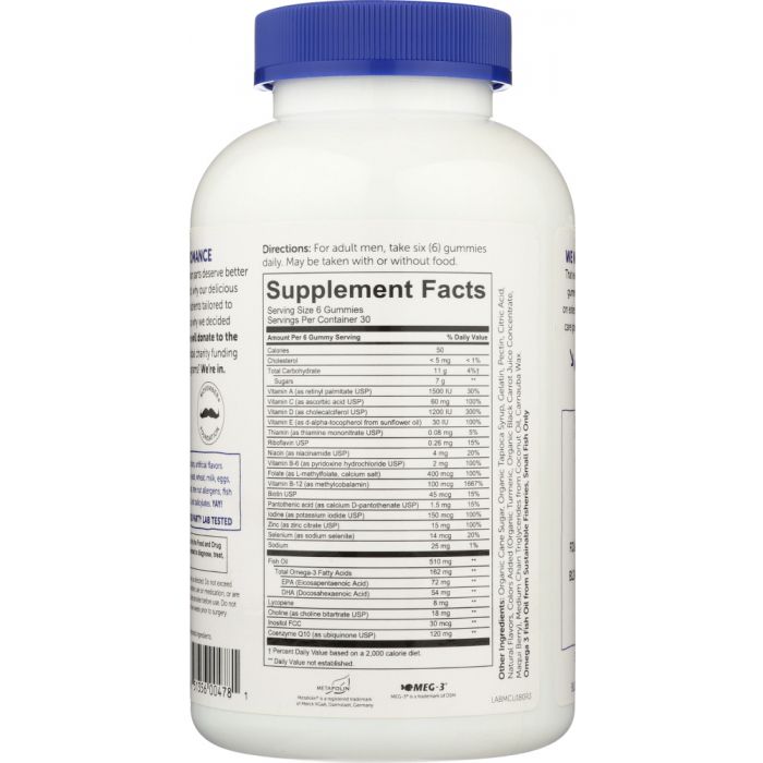 Who made the rule that a man needs a cape to be super? You work hard, take care of yourself and the people you love. Sure, x-ray vision is impressive, but we think you’re pretty super, man. Each Serving Includes: Premium nutrients A delicious multivitamin for tastebud amazement Omega 3 DHA and EPA fish oil for brain health* (from sustainable small fish) CoQ10 for heart health* (120 mg) Lycopene for arterial health and prostate support* * These statements have not been evaluated by the Food and Drug Administration. This product is not intended to diagnose, treat, cure, or prevent any disease.