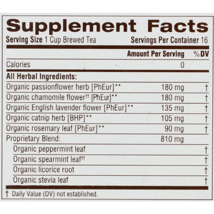 Formerly known as Easy Now® PersonalityCalm, collected and easy-going. Herbal PowerCalming. Helps you relax, anytime.* Reason to LoveIn the chaos of everyday life, we could use a little calm, right? How about a cupful? This blend of relaxing herbs like passionflower, chamomile, lavender and catnip will help bring some tranquility to your day (or night).* These herbs are called “nervines” because of their ability to have a beneficial effect on your nervous system.* We love this tea anytime we need to step back and take it easy. TasteA delightful blend of complex herbal tastes—floral, apple-like and minty! *These statements have not been evaluated by the Food and Drug Administration. This product is not intended to diagnose, treat, cure, or prevent any disease.